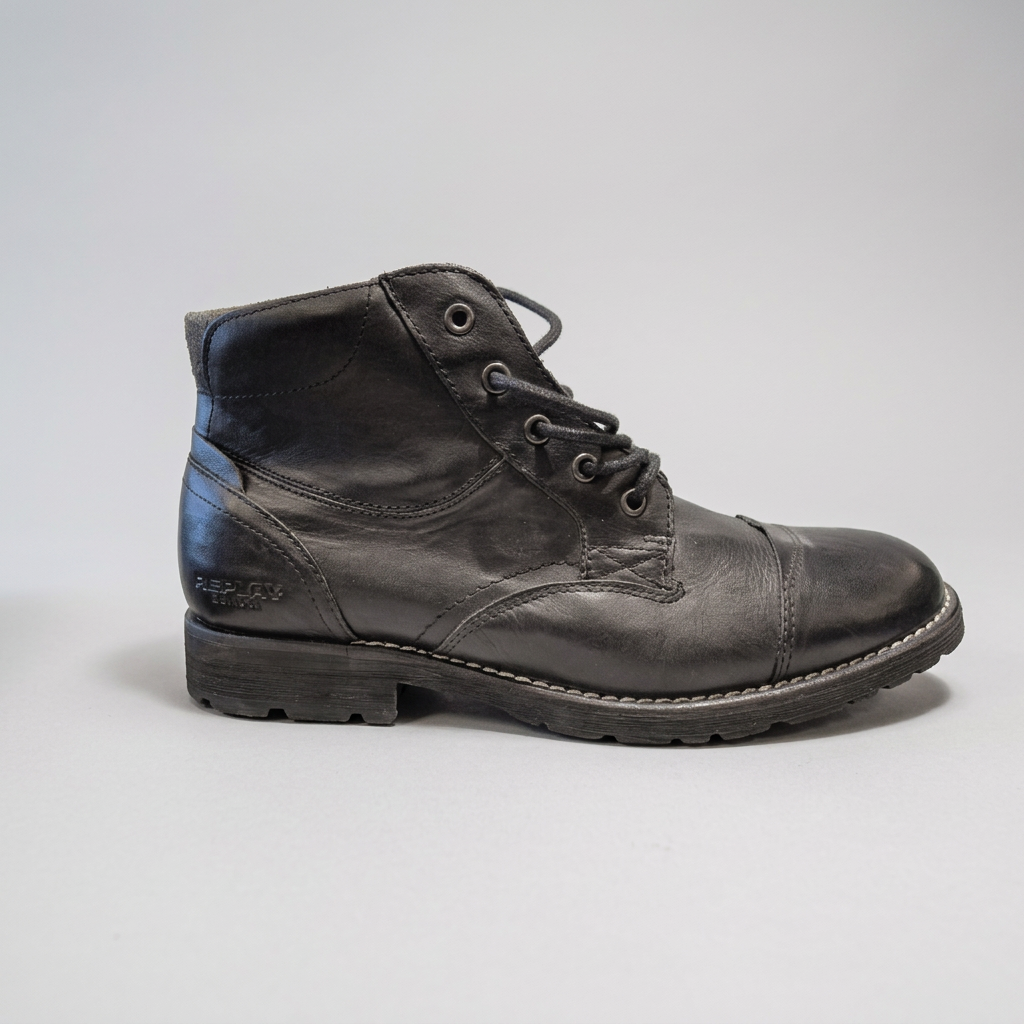 נעלי עור שחורות של ריפליי במראה “משומש” במכוון להשלמת לוק מחוספס וקז’ואלי