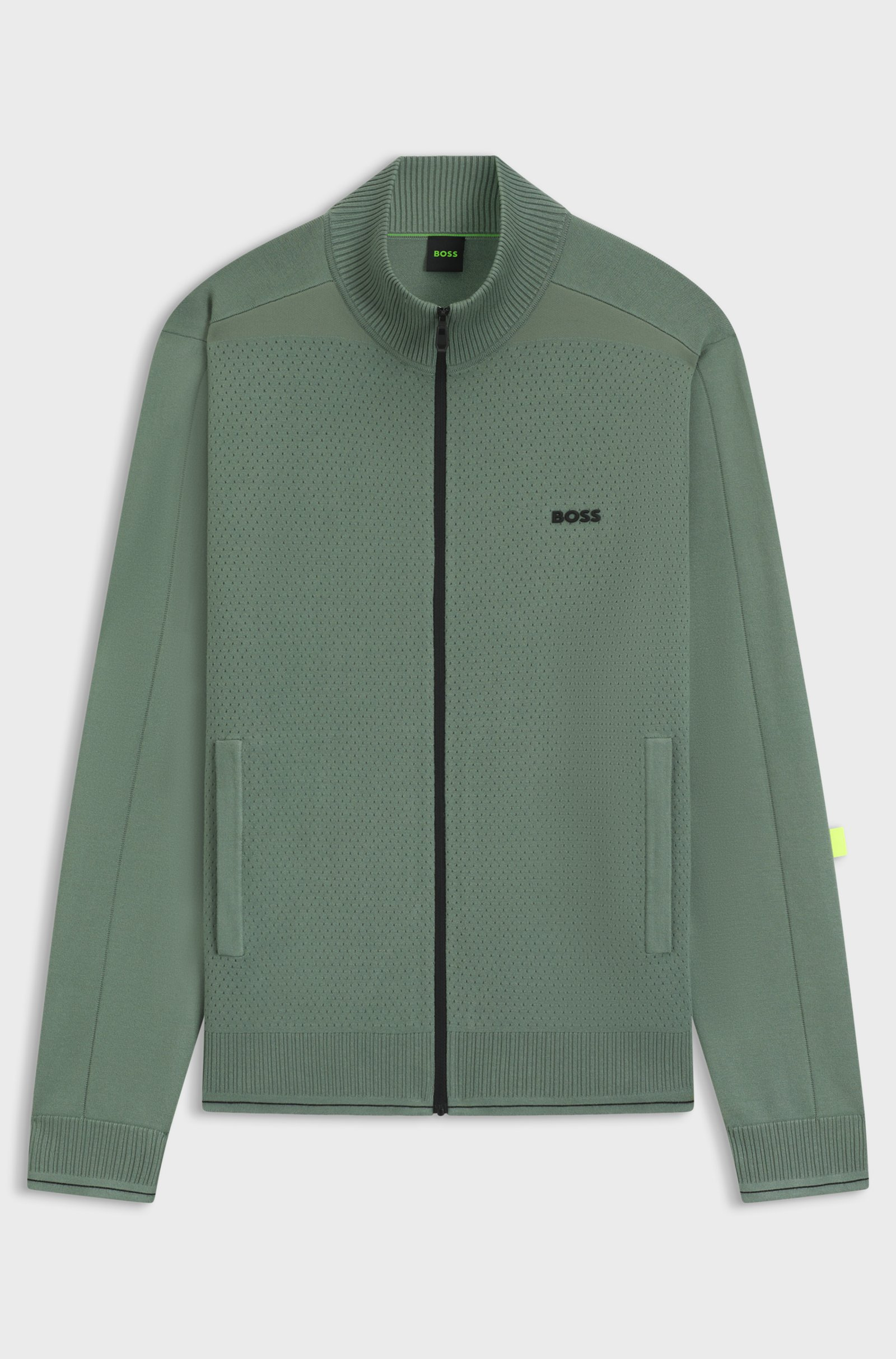 הקרדיגן הזה בגזרת רגולר מבית BOSS Menswear, הסרוג במבנה יצירתי בחזית. גימורי ריב. שוליים עם פסים. סגירת רוכסן. מוצר זה עשוי מסיבי צלולוז שמקורם בעץ טבעי המגיע מיערות המנוהלים באופן אחראי. אנו משתפים פעולה עם ארגונים חיצוניים כדי להבטיח טיפול מכבד ביערות בתוליים וביערות בסיכון. גזרה רגילה – צווארון עם רוכסן – שרוולים ארוכים – כיסי כניסה מהצד – אורך סטנדרטי