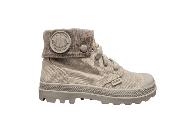 נעלי בראוס האייקוניות מבית מותג הנעליים פלדיום, בצבע אפור בהיר בגרסה מוקטנת לילדים. הנעליים עשויות מקנבס, עם סוליה עבה מגומי שמכסה גם את קצות האצבעות ורוכסן צדדי לנעילה קלה.