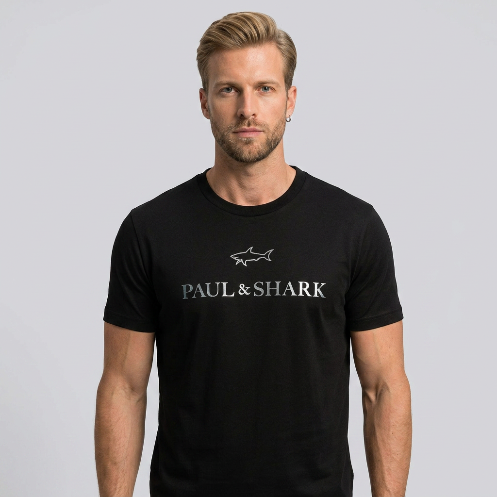 PAUL & SHARK T-SHIRT | טישירט פול אנד שארק לוגו פרינט | גברים | שחור