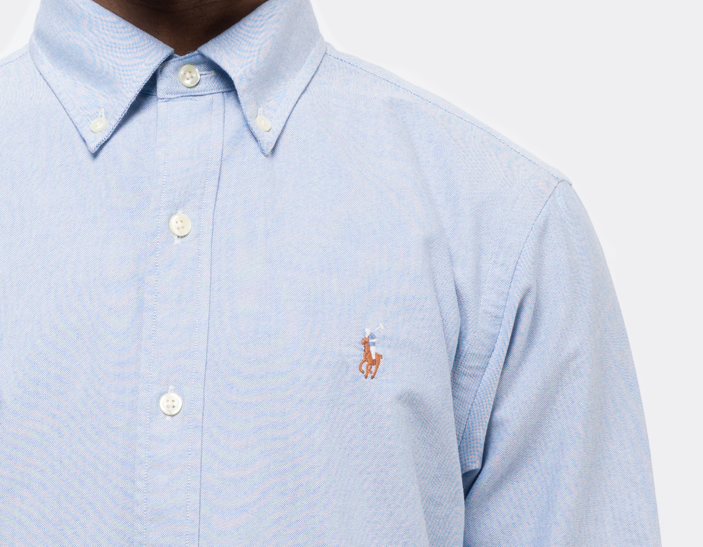 חולצת האוקספורד הופיעה לראשונה בתחילת דרכו של מותג ראלף לורן, ומאז ביססה את מעמדה כאבן יסוד של המראה הפולו. כיום ממשיך מר לורן לעצב אינספור וריאציות של החולצה האייקונית שלו, כולל הגרסה המחויטת הזו, המעוטרת בלוגו הרקום בחזית
