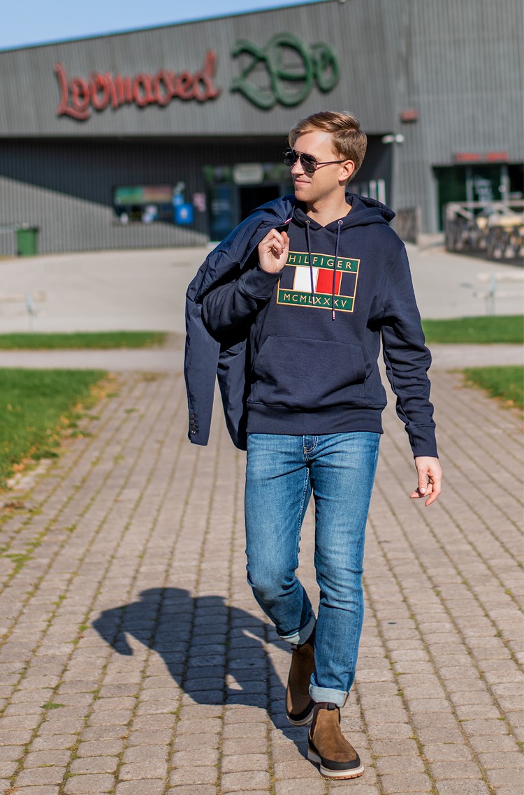 סווטשירט קפוצ`ון כחול מבית היוצר של טומי הילפיגר. פריט בייסיק זה מאופיין בלוגו חזיתי נוכח בצורת מלבן מוזהב שבתוכו הלוגו ומוטיב הדגל המוכר. פאנל כיסים קדמי משדרג את פריט הבייסיק המוצלח הזו ומוסיף לנוכחות העיצובית שלו גם מימד פרקטי נינוח